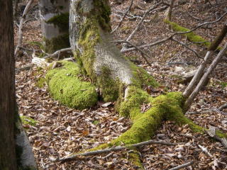 引き返して沢沿いに行き、沢から離れてトウヒやブナの原生林にはいる。七ッ池あたりからはコケに覆われ、大台ヶ原らしい雰囲気。